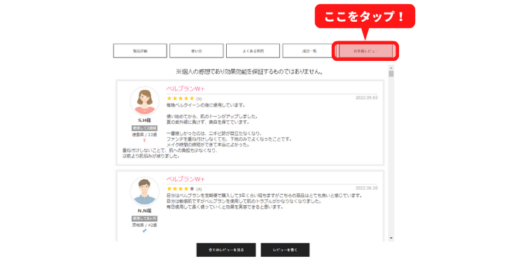 ③お客様レビューをタップ