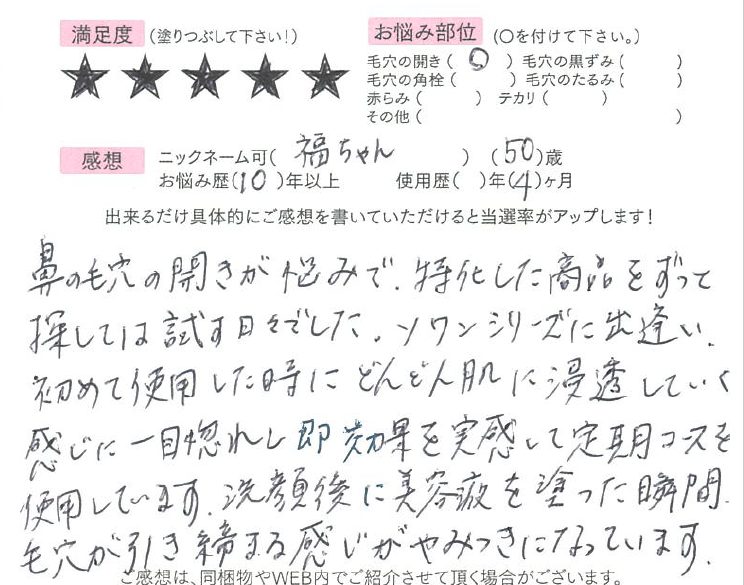 少しずつ毛穴が目立ちにくくなってきたとのこと、