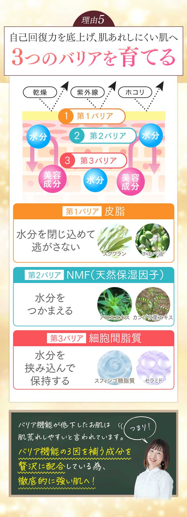 「ラメアライズ」を肌奥*1まですばやく届け、自己回復力を呼び覚まし、肌の生まれ変わりを後押しします。3つの有効成分が脂漏性敏感肌の赤みをケアし、健やかな肌へ。同時に角質層をうるおいで満たし、弱ったバリア機能をサポートします。