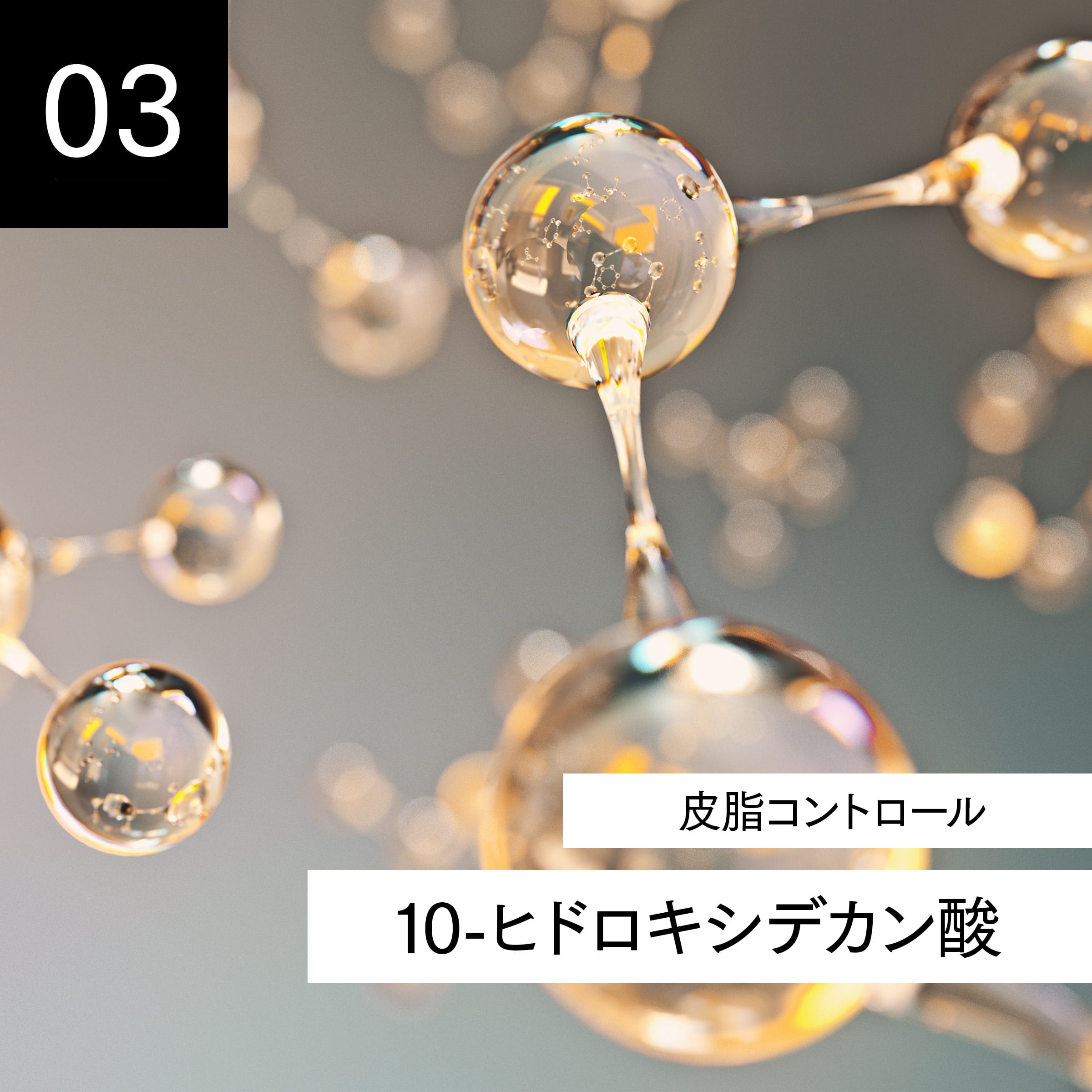 黒ずみ毛穴をケア*1する化粧水。肌への浸透性*2を追求し「油溶性ビタミンC誘導体」を採用。肌馴染みと吸収性*2は通常のビタミンCの約30倍。さらにコラーゲンケア・ハリケア・活性酸素ケアも行い黒ずみ*3予防に。さらにメラニンによる黒ずみには「10-ヒドロキシデカン酸」がアプローチ。肌に弾力とハリを与える「アーチチョ ーク葉エキス」、肌を引き締める「ノイバラ果実エキス」、肌のイオンバランスも「グリシルグリシン」が整え、黒ずみ*3・ザラつきのないうるおいに満ちた透き通る肌へ。