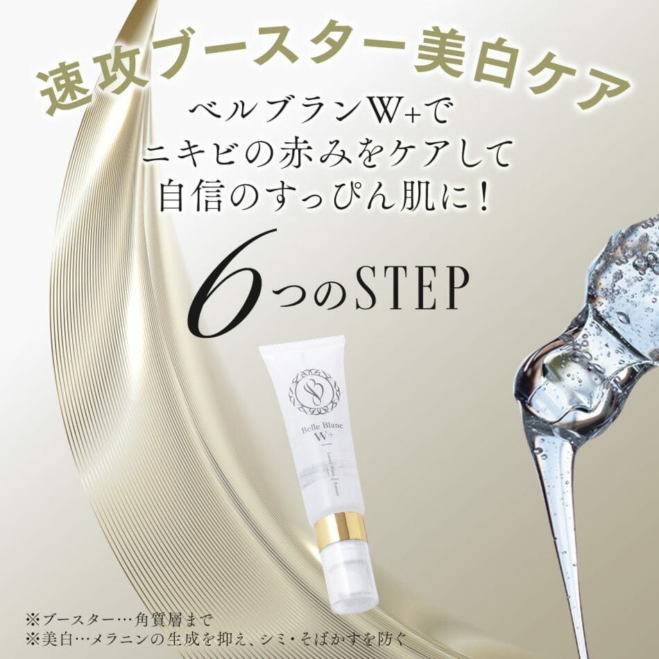 Dr.Re9で人気の〔ニキビ・赤みケア*1〕ベルブランW+のお試し定期コース。トラブルを繰り返さない「なめらかで透明感ある肌へ」医薬部外品*3の有効成分と、導入*4×美白*2×ニキビ予防の3つの軸で理想のお肌へ導きます。